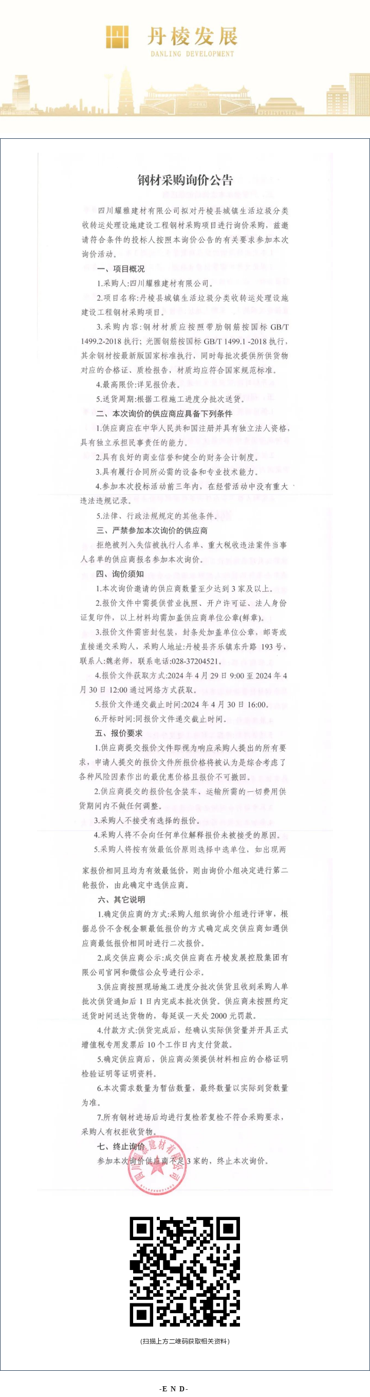 丹棱縣城鎮(zhèn)生活垃圾分類收轉(zhuǎn)運處理設施建設工程鋼材采購項目詢價公告
