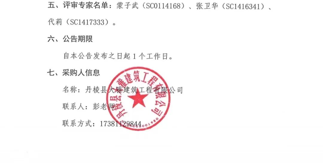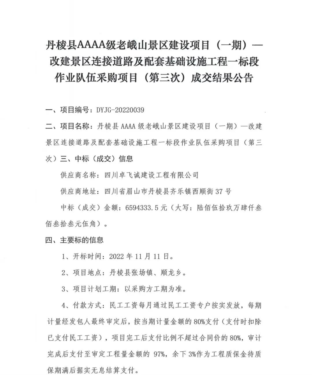 丹棱縣AAAA級老峨山景區(qū)建設項目 (一期)-改建景區(qū)連接道路及配套基礎設施工程一標段作業(yè)隊伍采購項目 (第三次) 成交結果公告