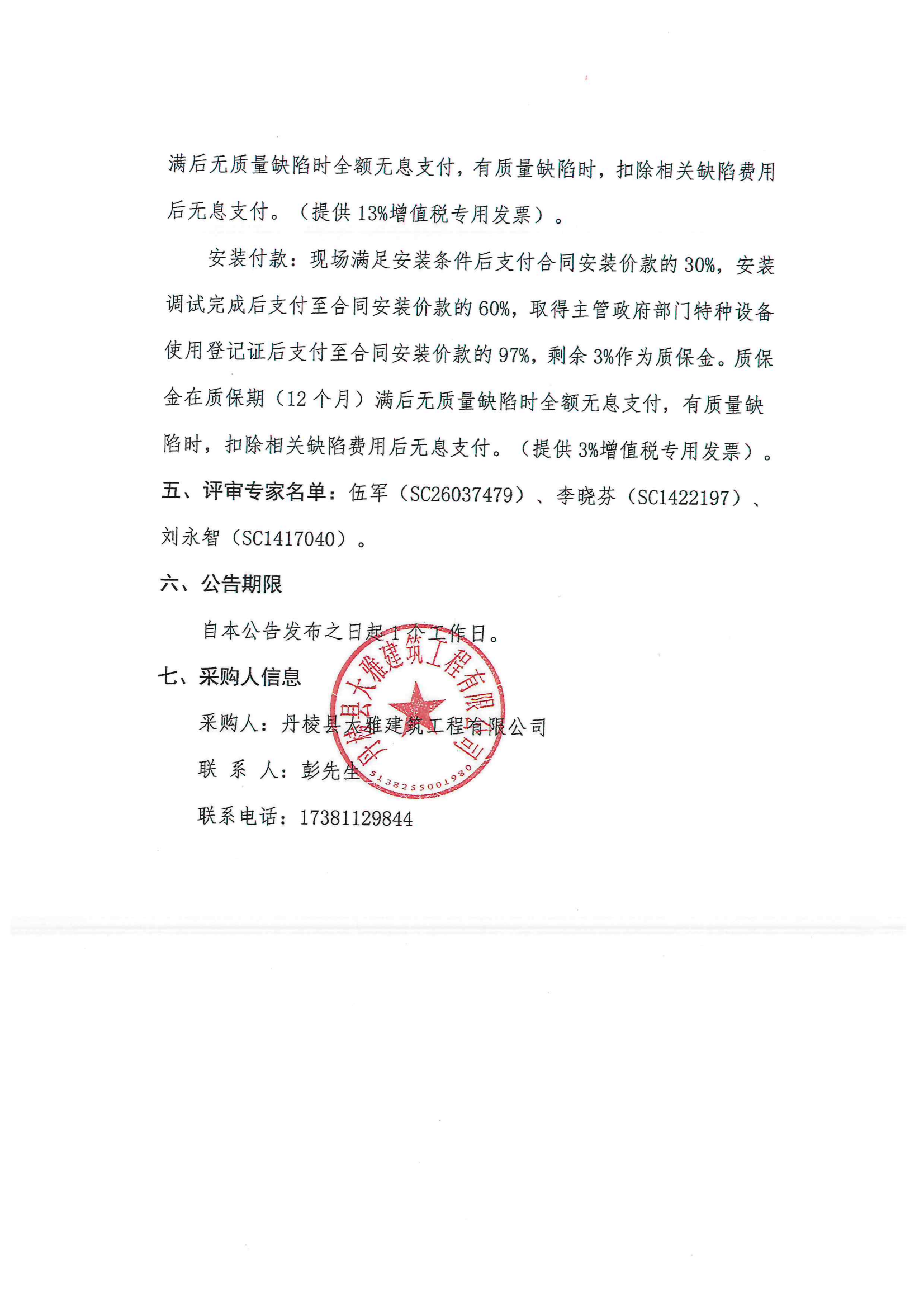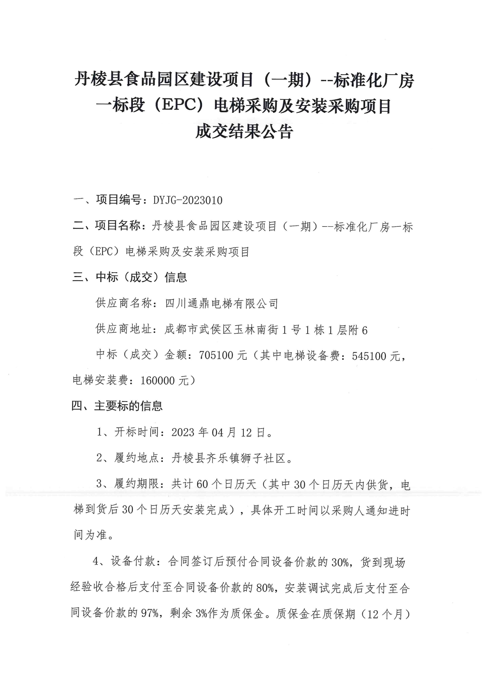 丹棱縣食品園區(qū)建設項目(一期)--標準化廠房一標段(EPC)電梯采購及安裝采購項目成交結(jié)果公告