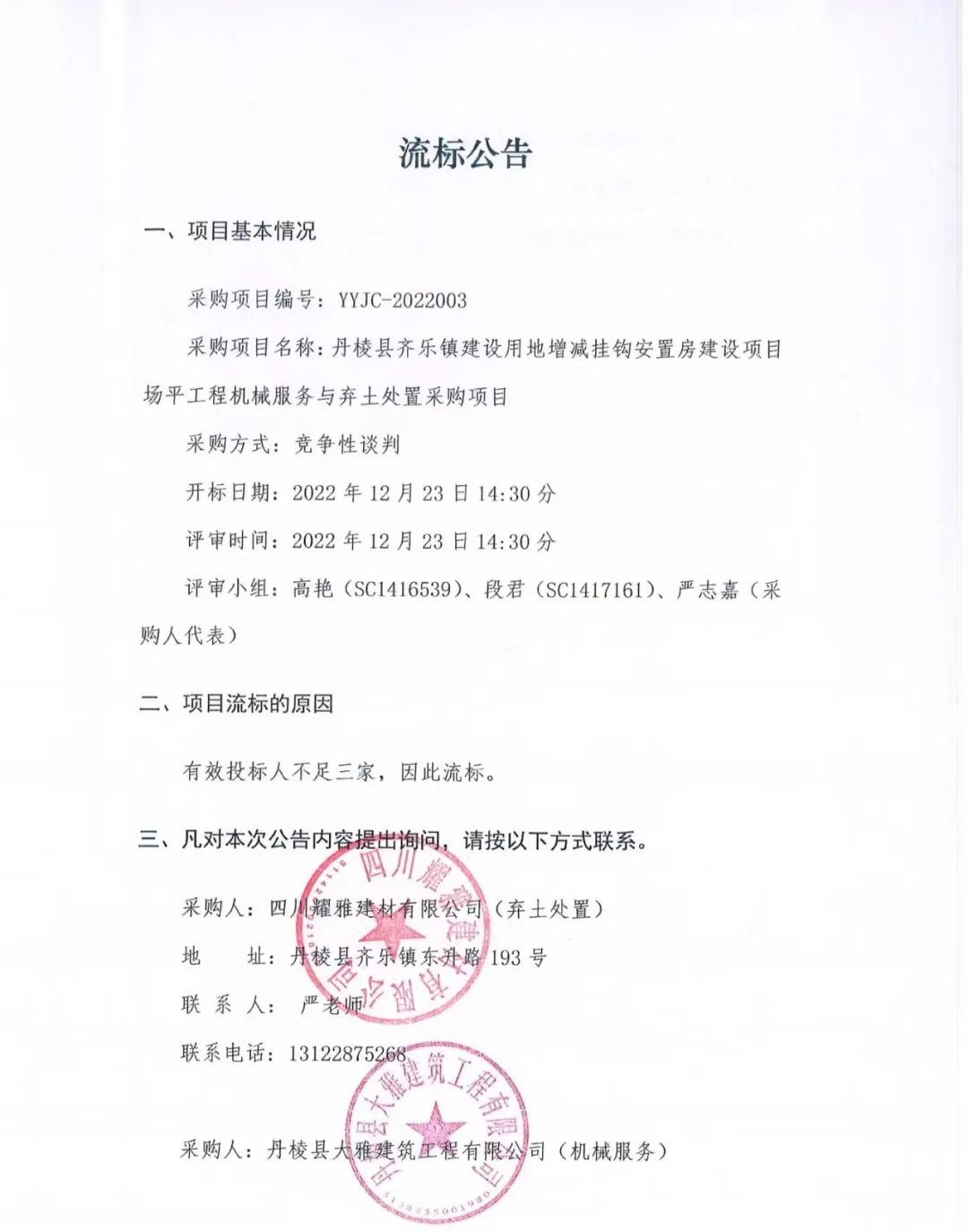 丹棱縣齊樂鎮(zhèn)建設(shè)用地增減掛鉤安置房建設(shè)項(xiàng)目場平工程機(jī)械服務(wù)與棄土處置采購項(xiàng)目流標(biāo)公告