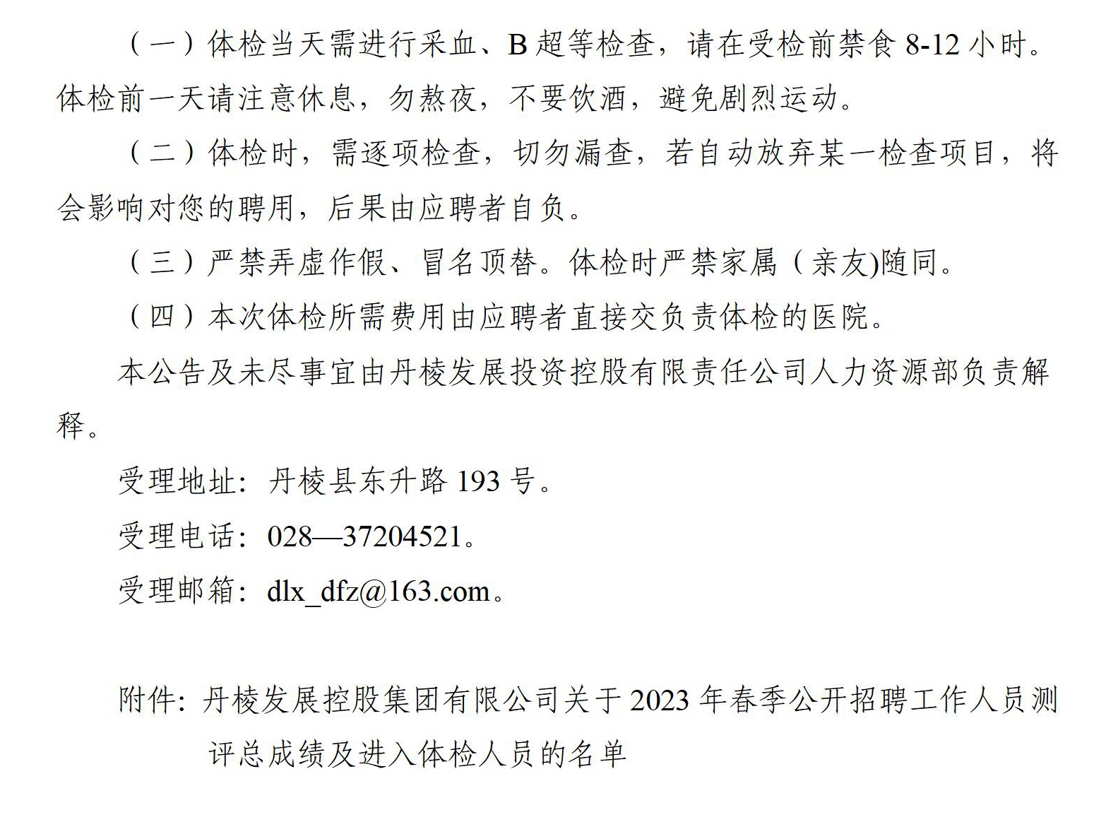 丹棱發(fā)展控股集團(tuán)有限公司關(guān)于2023年春季公開招聘工作人員測(cè)評(píng)總成績(jī)及進(jìn)入體檢人員的公告