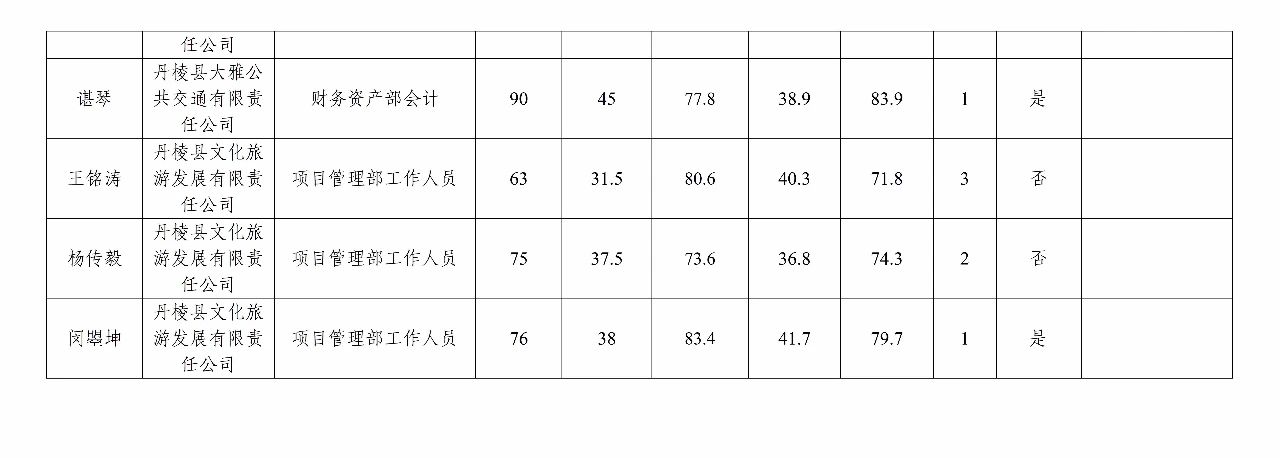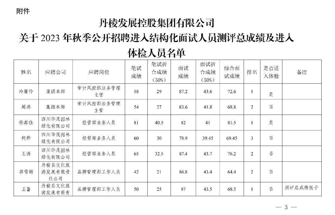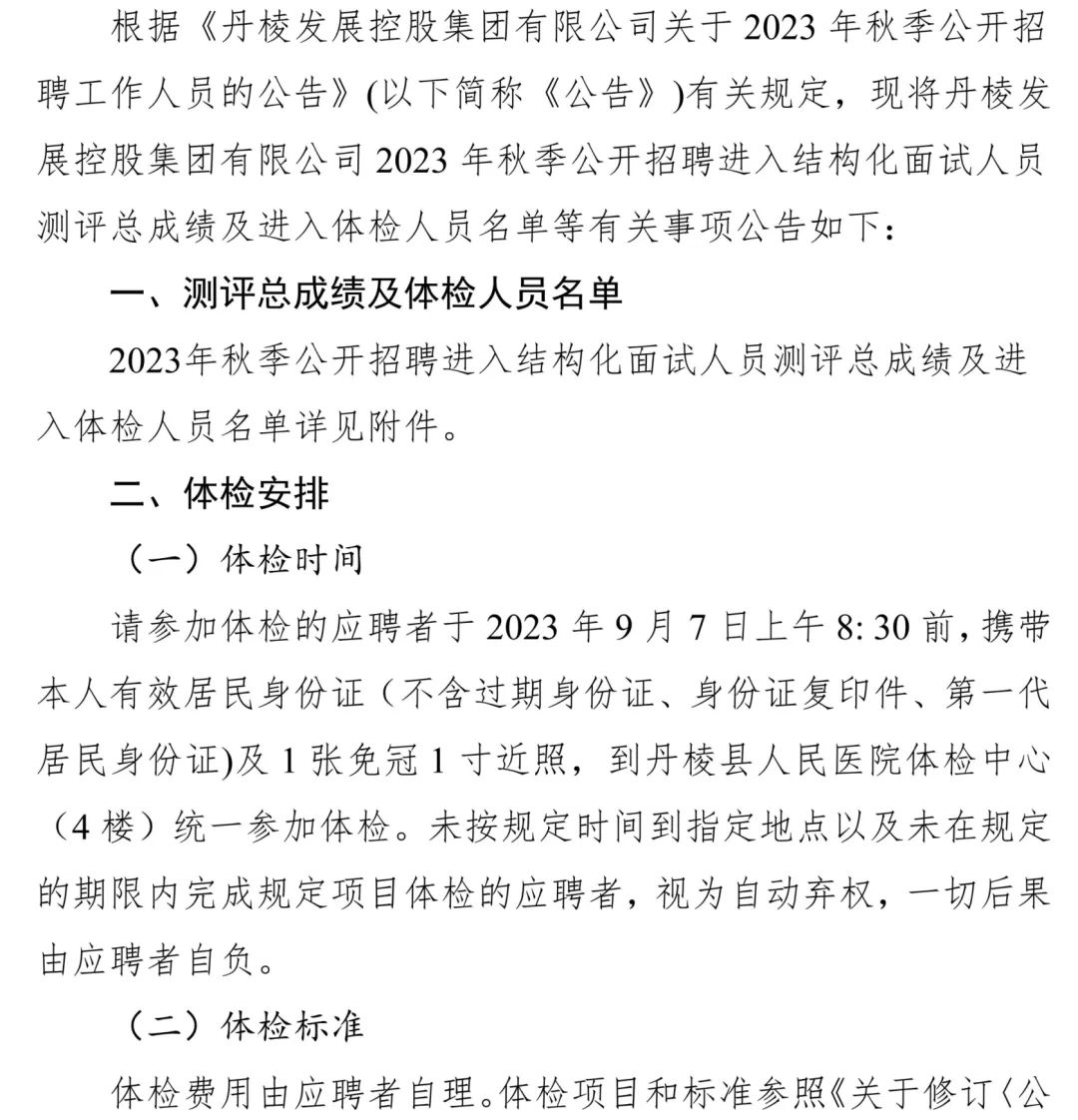 丹棱發(fā)展控股集團有限公司關于2023年秋季公開招聘進入結(jié)構(gòu)化面試人員測評總成績及進入體檢人員的公告