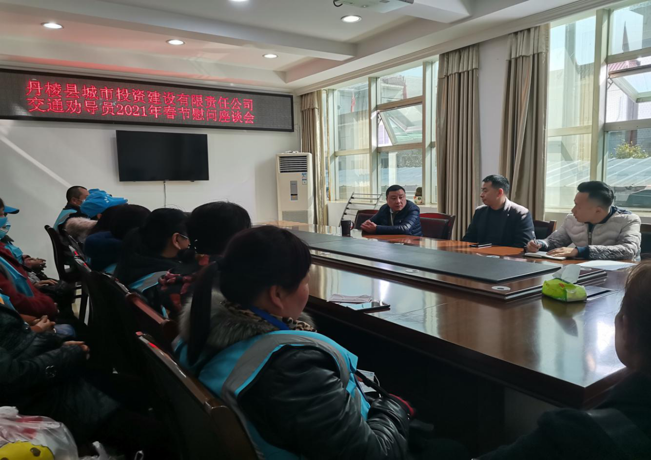 春節(jié)將至,歲寒情深。2月5日,丹棱縣城市投資建設(shè)有限責任公司組織召開了交通勸導(dǎo)員2021年春節(jié)慰問座談會,會議在丹發(fā)展公司董事長趙勇同志的主持下召開。