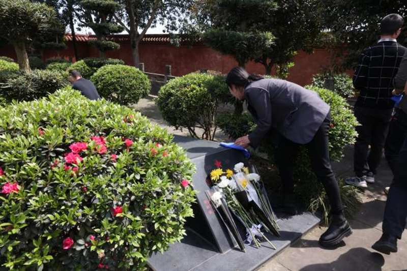 在莊嚴(yán)聳立的革命烈士紀(jì)念碑前,全體人員整齊列隊(duì)、神情肅穆,向革命先烈默哀致禮并敬獻(xiàn)鮮花。隨后,通過重溫入黨誓詞、擦拭烈士墓碑、學(xué)習(xí)先烈事跡等形式表達(dá)對(duì)英烈的深切緬懷和崇敬之情。