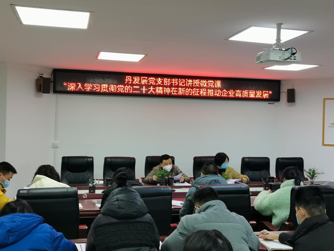 按照縣委《關(guān)于認(rèn)真學(xué)習(xí)宣傳貫徹黨的二十大精神的通知》相關(guān)要求,12月16日,丹發(fā)展黨支部召開黨員(擴(kuò)大)會(huì)議,由支部書記講黨課,學(xué)習(xí)貫徹黨的二十大精神。丹發(fā)展公司全體黨員及員工參加。